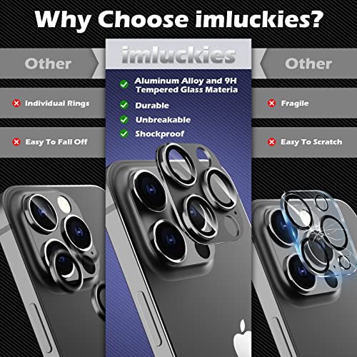 Imluckies Pellicola Fotocamera per iPhone 13 Pro/iPhone 13 Pro Max, [Anti-Graffio] Lega di Alluminio Integrata con Vetro Temperato 9H Metallica Fotocamera Protezione per Obiettivo Schermo - Nero