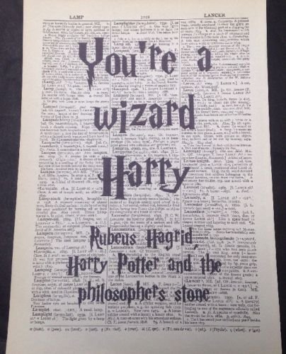 Immagine da parete con scritta "You're A Wizard Harry Potter", stile vintage, con scritta in lingua inglese "Quirky Funky Wizard" (lingua italiana non garantita)