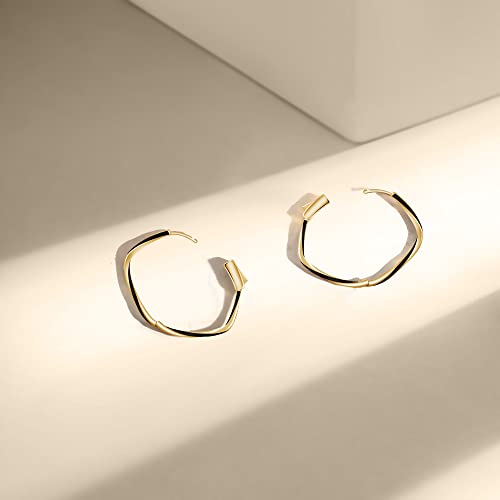 Immobird Orecchini Donna Cerchio in Argento Sterling 925 Orecchini Cerchio Grande Quadrato Irregolare Orecchini a Cerchio (Oro)