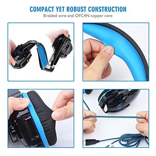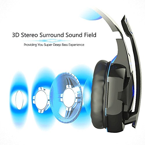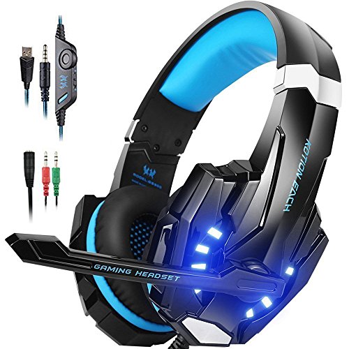 IMMOSO cuffia per gaming PS4 G9000, auricolari per gaming 3,5 mm stereo con microfono in-line, regolatore di volume e luce a LED, per PS4 Xbox One PC tablet smartphone, blu