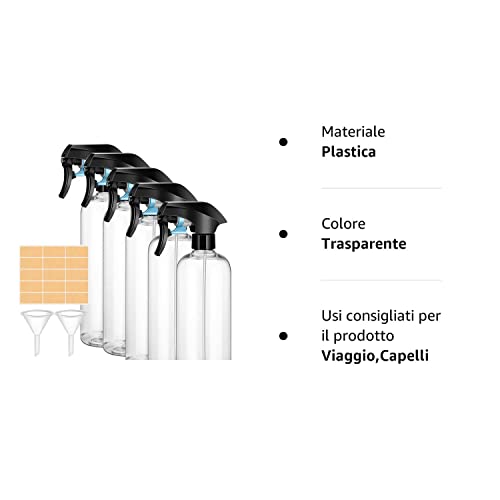 【Confezione da 5 pezzi】 Confezionato con 5 flaconi spray da 500 ml in trasparente, puoi distinguere diversi liquidi facilmente, sufficientemente grandi e maneggevoli per uso familiare, hotel e altro, piacevole per la tua vita quotidiana
