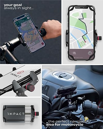 ✔️ Sicurezza assoluta: con questo supporto per cellulare di Impact per moto e bicicletta non dovrete più preoccuparvi del vostro costoso smartphone. Massima tenuta grazie a un sofisticato meccanismo e un elastico di sicurezza aggiuntivo.