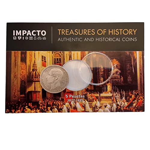 La Storia nelle sue mani - Autentica moneta da 5 Pesetas coniati tra il 1882 e il 1887, durante il regno di Alfonso XII. Questo tipo di moneta è noto come "Con la barba".