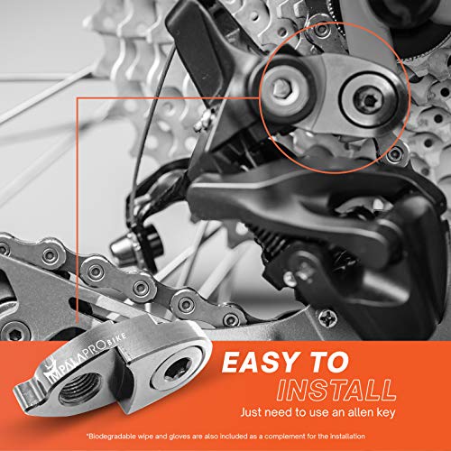 ♂️️ Facile installazione: gancio del deragliatore - prolunga deragliatore posteriore mtb molto facile da installare con una chiave a brugola e la salvietta biodegradabile inclusa. Semplicemente cambiando la vite che fissa il cambio alla piastra della bicicletta. La superficie di accoppiamento ha scanalature di pressione radiale per aumentare l'attrito ed evitare problemi di vibrazioni