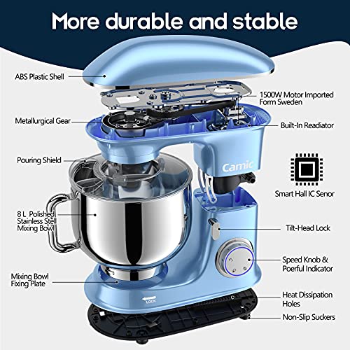 Impastatrice Planetaria Camic 1500W 8 Litri Robot da Cucina con ciotola di acciaio inossidabile, Robot da cucina grandi 6 velocità con, impastatrice da cucina (8 L, blu)