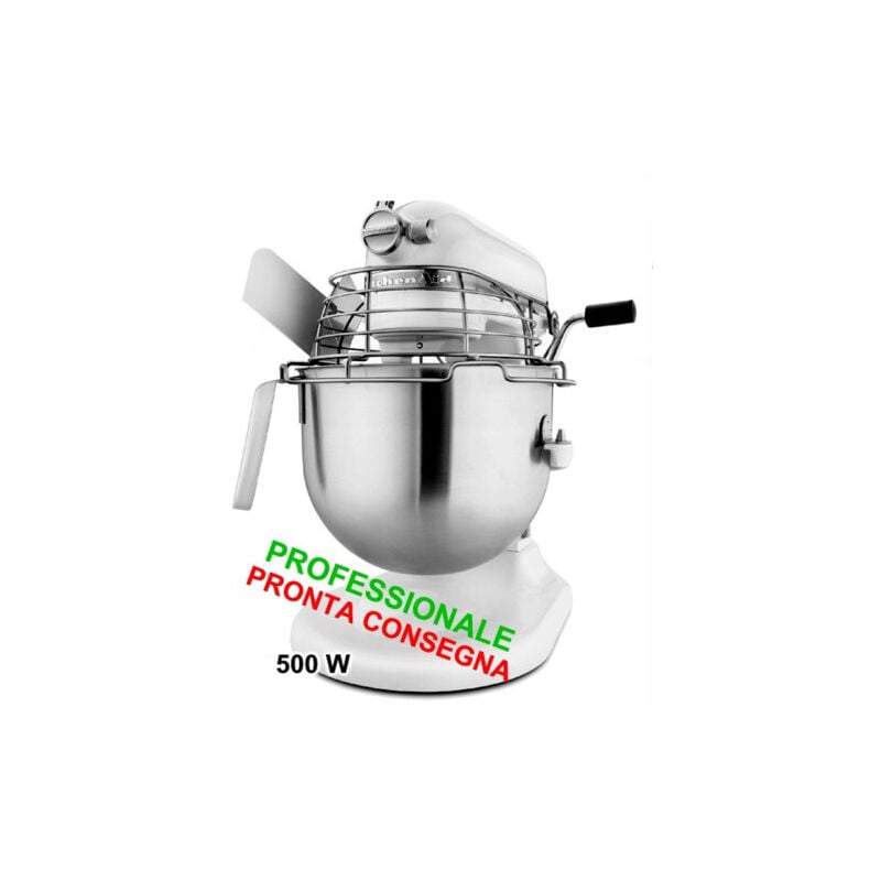 Codice RS3362 - Mixer multifunzione KITCHENAID mod. ME-5KSM7990EWH PROFESSIONAL, 230 volt, 500 watt, dimensioni cm. 37.1x33.8x41.7 (lxpxh), 40-200 giri/min. Struttura in metallo pressofuso, movimento planetario, motore a presa diretta, 10 velocità regolabili, completo di ciotola in acciaio inox da lt.6.9 con beccuccio versatore, sollevamento vasca, griglia di protezione e pulsante di emergenza. In dotazione: frusta piatta - frusta per montare - frusta per impastare (INTERAMENTE INOX). Possibilità di avere numerosi altri accessori optional per rendere la Vs. planetaria versatile a 360°: macinacarne con tramoggia, affetta/grattugia verdure (3 rulli), accessorio per pasta deluxe (sfoglia, spaghetti, tagliolini), accessorio per ravioli, paraspruzzi, spremiagrumi, passa verdura/frutta, macina per cereali, supporto per insaccati, apriscatole, tramoggia, vasca termica per lavorazioni a freddo e a bagnomaria. Una macchina indispensabile per realizzare impasti per pizza, biscotti, croissant