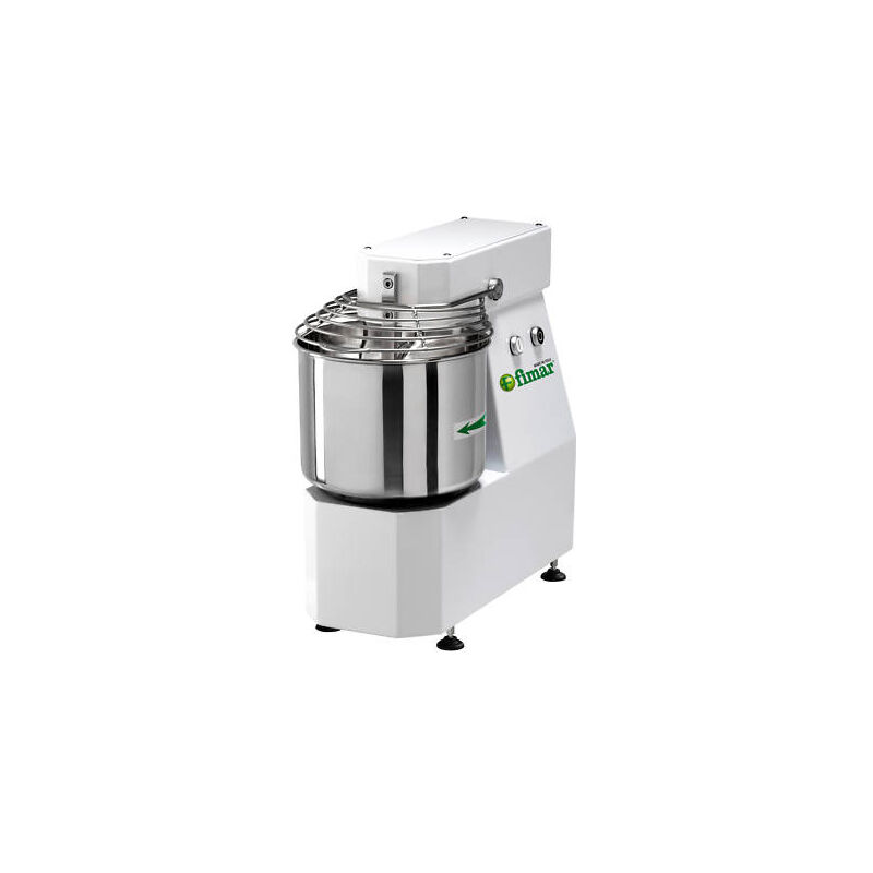 Codice RS1309 - Impastatrice a spirale con testa fissa modello FI-7/SN, kg.7 (10 lt - vasca diametro cm.26x20h), produzione 21 kg/h, kw 0.37, Hp 0.5, disponibile sia a 230 volt che 400 volt (specificare al momento dell'ordine), dimensioni 56x28x57/80 cm. (lxpxh). Velocità singola. Macchina per realizzare diversi tipi di impasto, indicata soprattutto per impasti teneri come pane, pizza e piada. Struttura rivestita con vernice antigraffio, parti a contatto con gli alimenti (vasca, spirale ed asta spaccapasta) in acciaio inox. Microinterruttore di sicurezza su coperchio vasca, coperchio grigliato inox. ***CLICCA E GUARDA IL VIDEO***
