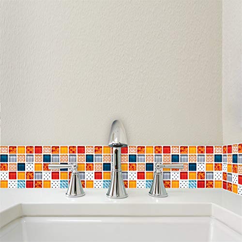 Z IMEI Impermeabile DIY Adesivi per Piastrelle Cucina 24 Pezzi Mosaico Autoadesivo Adesivi da Parete Decorazione Piastrelle Adesivi Bagno-colorato 20x20cm(7.9x7.9in)