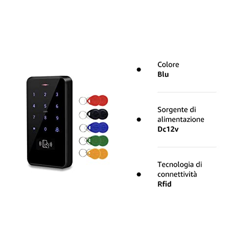 [5] Non è necessario connettersi al computer, l'elemento può funzionare da solo. Funziona con il sistema di alimentazione DC12V. Pacchetto comprensivo di tastiera RFID + 10 pz telecomandi a colori misti.