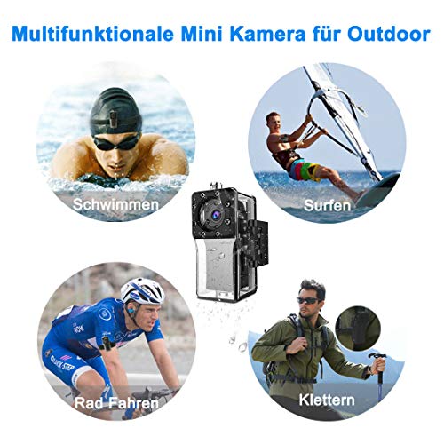 [Mini videocamera impermeabile] basta inserire una scheda Micro SD Slot, accendere WiFi spento, e quindi accendere la fotocamera per video automaticamente. niyps Mini videocamera wireless viene fornito con un resistente e impermeabile in plastica e molti altri accessori, che lo rende ideale per l' uso come Outdoor Mini Sport DV, come lo sci in inverno e sport acquatici in estate ad esempio, Surf, immersioni, snorkeling, il nuoto decorativi.