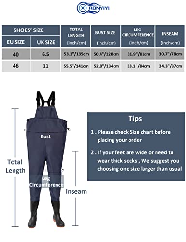 CONSIGLI CALDI! ! ! - Quando si decide di acquistare trampolieri da pesca per uomini donne, si prega di non scegliere la taglia che si indossa di solito. Si consiglia di scegliere una taglia di una taglia più grande della tabella delle taglie.