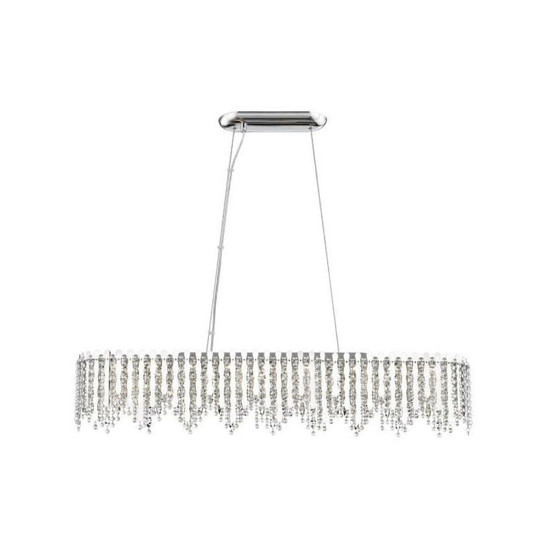 Impex Belize Cristallo cromato oblungo a 10 luci | Finitura: Cromata | Altezza: 42 cm | Altezza massima: 152 cm | Lunghezza: 140 cm | Sporgenza: 40 cm | Tipo di lampada: G9 | N. di lampade: 10 | Dimmerabile: Sì - Sono necessarie lampadine dimmerabili