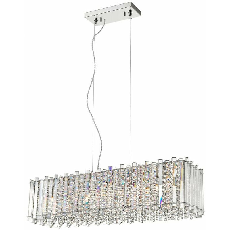 Impex Clara Cristallo cromato oblungo a 7 luci | Finitura: Cromata | Altezza: 21 cm | Altezza minima: 35 cm | Altezza massima: 135 cm | Lunghezza: 84 cm | Larghezza: 24 cm | Tipo di lampada: G9 | N. di lampade: 7 | Dimmerabile: Sì - Sono necessarie lampadine dimmerabili | Potenza (max): 33 W