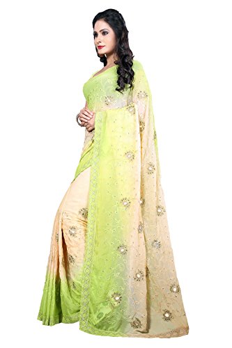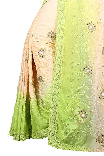 Arsh impex designer embroidered nazneen perrot and beige double color saree with unstitched blouse piece