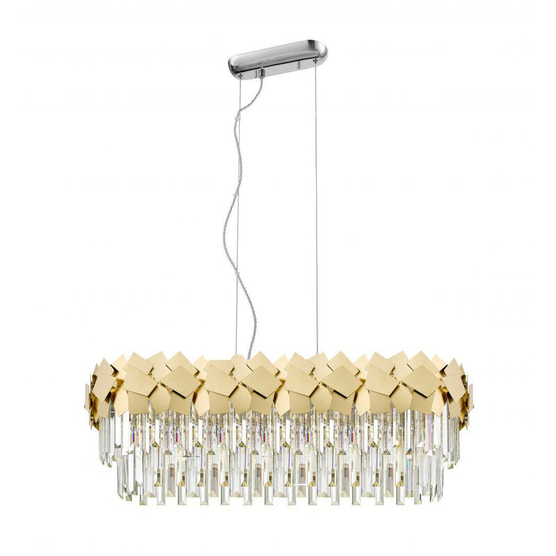 Impex Celine Lingotto oblungo a 6 luci in cristallo con taglio laser in oro | Finitura: Oro | Altezza minima: 54 cm | Altezza massima: 154 cm | Tipo di lampada: E14 | N. di lampade: 6 | Dimmerabile: Sì - Sono necessarie lampadine dimmerabili | Potenza (max): 40 W