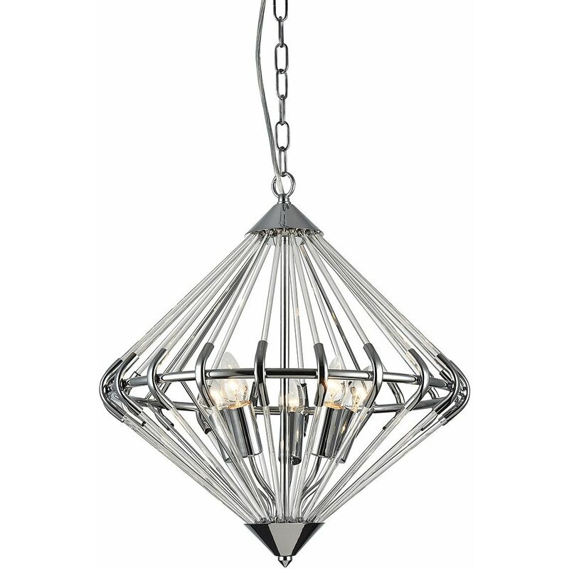 Impex Gerda Plafoniera a sospensione con cornice in filo metallico a 5 luci cromate | Finitura: Cromata | Altezza: 75 cm | Lunghezza: 46 cm | Tipo di lampada: E14 | N. di lampade: 5 | Dimmerabile: Sì - Sono necessarie lampadine dimmerabili | Potenza (max): 60 W
