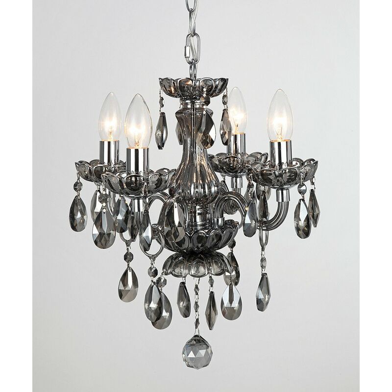 Impex Rodeo Lampadario a 4 bracci in cristallo fumé | Finitura: Cristallo Fumé | Altezza: 40 cm | Lunghezza: 35 cm | Tipo di lampada: E14 | N. di lampade: 4 | Dimmerabile: Sì - Sono necessarie lampadine dimmerabili | Potenza (max): 40 W