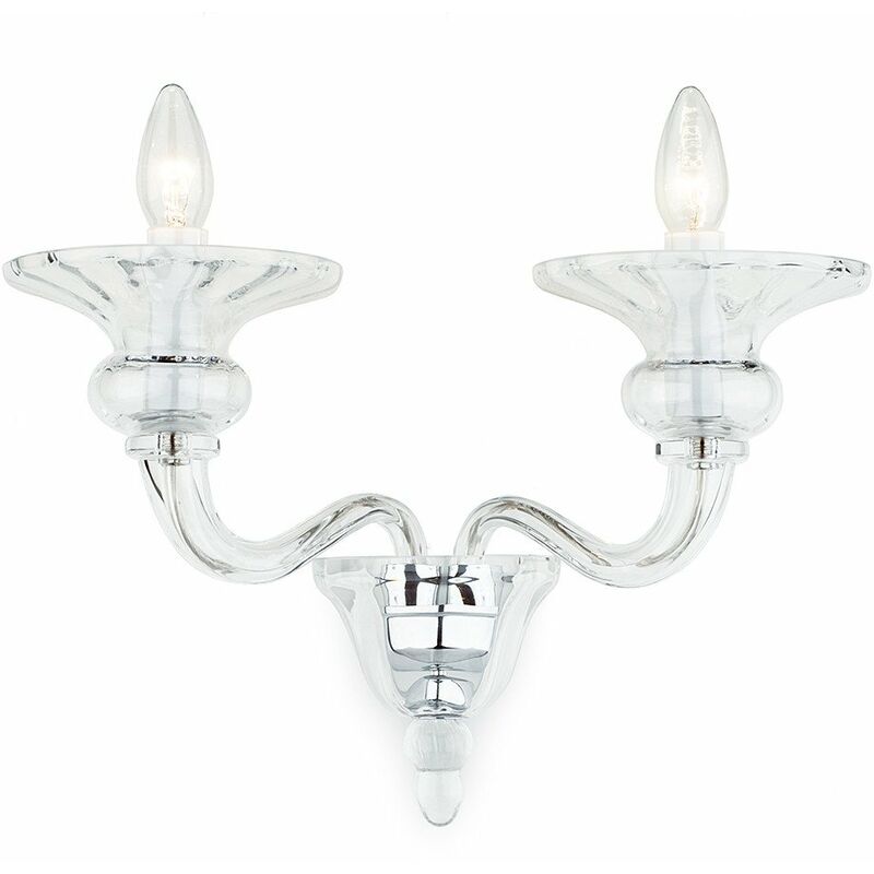 Impex Zagreb Lampada da parete a candela in vetro trasparente | Finitura: Cromata | Altezza: 28 cm | Lunghezza: 41 cm | Sporgenza: 20 cm | Tipo di lampada: E14 | N. di lampade: 2 | Dimmerabile: Sì - Sono necessarie lampadine dimmerabili | Potenza (max): 60 W