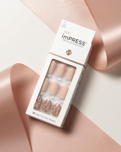 KISS ImPRESS Press-On Manicure, Evanesce, Short Length Square, con tecnologia PureFit, Include Prep Pad, Mini Laglia, Stick Cuticola e 30 Unghie Finte