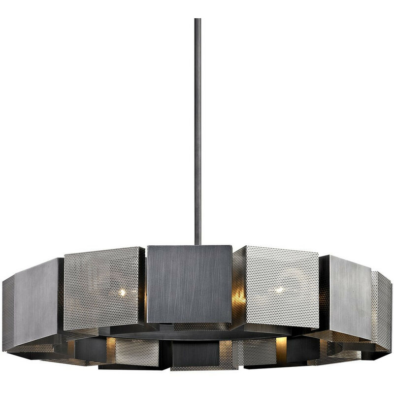Impression Ciondolo 14 Luci Grafite E Nichel Satinato | Finitura: Grafite E Nichel Satinato | Materiale: ferro lavorato a mano | Grado di protezione IP: IP20 | Altezza: 18,4 cm | Altezza minima: 36,2 cm | Altezza massima: 142,9 cm | Diametro: 92,1 cm | Tipo di lampada: E14 | N. di lampade: 14 | Lampadina inclusa: no | Dimmerabile: Sì - Sono necessarie lampadine dimmerabili | Potenza (max): 40 W