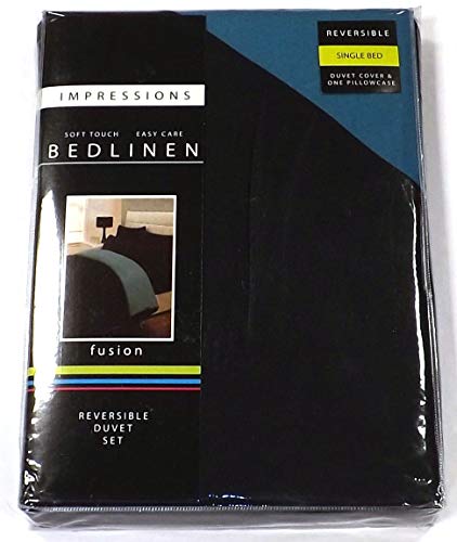 Impressions - Set di Copripiumino Reversibile Fusion + federe per Cuscini in Coordinato, 100% Poliestere, Nero/Foglia di tè, Singolo