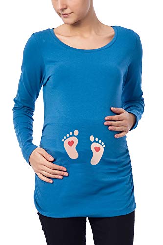 M.M.C. Impronta Bambino - Simpatica graziosa T-Shirt Premaman Manica Lunga per la Gravidanza (Blu Scuro, Large)