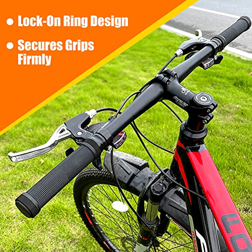✦ Double Lock Bike Hand Grips:Questi Impugnature per Biciclette sono dotati di 2 anelli di bloccaggio, è possibile installarli su entrambe le estremità del manubrio, rendendo il manubrio saldamente fissato sulla moto. Impedisca efficacemente l'allentamento della maniglia della bicicletta, migliora la stabilità e l'effetto di assorbimento degli urti e assicura la sicurezza di guida.