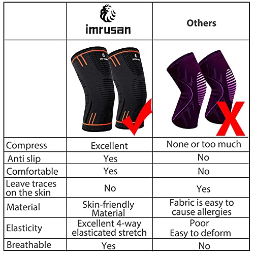 IL TESSUTO TRASPIRANTE ALTAMENTE ELASTICO - imrusan tutore ginocchio Leggero, traspirante e regolabile, vestibilità, comoda con tessuto elasticizzato a 4 vie. Vestibilità ergonomica progettata per il comfort per tutto il giorno, la flessibilità e la massima durata.
