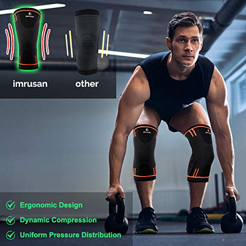 SUPPORTO PERFETTO PER ESERCIZIO - imrusan Ginocchiera sportiva Supporta il movimento del ginocchio durante lo sport e protegge da eccessivo sforzo durante l'esercizio fisico intenso. Allevia gli effetti dell'uso eccessivo e dell'attività ad alto impatto.