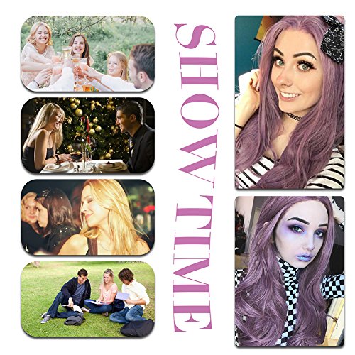 Imstyle - Parrucca da donna, lunga, ondulata, con attacco frontale in tulle, resistente al calore, in fibra sintetica, colore viola/lilla naturale, 66 cm