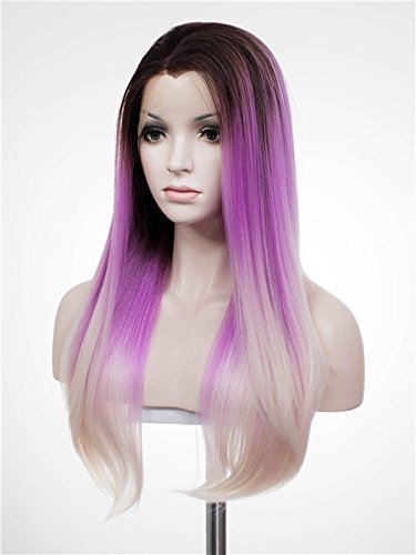 Imstyle Silky Staright texture Cosplay 61 cm Dark Root ombre viola rosa mix bianco color Heat Resistant synthetic Lace Front WIG