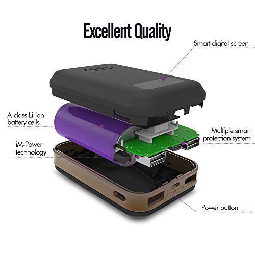 Imuto Caricabatterie Portatile 10000mAh Batteria Esterna Portatile Caricatore Cellulare Power Bank Mini Battery Pack Porte 2*USB con Display LCD per iPhone11/Pro, Samsung Galaxy S10, Note 10, Huawei