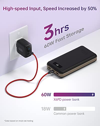 Imuto Power Bank 27000mAh, PD 60W USB C Carica Super Rapida con Display LED, 3 Uscite Caricatore Portatile Powerbank per iPhone 14/14 Pro/11/Pro/Max/XR/XS, Samsung note10/S10, Huawei, Switch, Tablet
