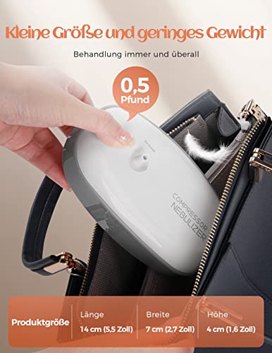 Silenzioso e portatile: il nebulizzatore leggero e compatto (15 x 8 x 5 cm), grande solo quanto il palmo di un adulto e può essere utilizzato a casa o all'aperto. I nebulizzatori per inalatori funzionano a meno di 65 dB, molto più bassi di altri nebulizzatori per compressori dello stesso tipo