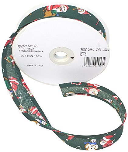 Inastri - Nastro sbieco di Cotone Babbo Natale e Pupazzo di Neve 25/5/5 mm, Rosso/Verde