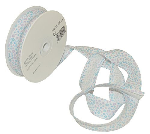 Inastri - Rotolo di Nastro sbieco in Cotone Piccolo 20 m x 1 Pollice con Motivo Floreale Blu e Lilla