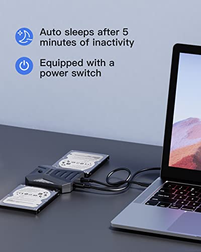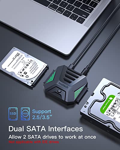 Inateck Adattatore USB 3.2 Gen 2 a SATA, Clonazione del Disco nel Software, Adatto per SSDs/HDDs 2 x 2.5/3.5 Pollici, Adattatore di Alimentazione 12V/3A Incluso