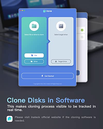 Clonazione dei dischi nel software: È possibile clonare i dischi con il software, rendendo il processo di clonazione più visivo rispetto alla clonazione offline per essere monitorato in tempo reale. Si prega di visitare il sito ufficiale Inateck se il software di clonazione è necessario.