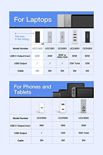Inateck, caricatore USB C, 45W, con cavo USB C da 2 m, Power Delivery Type C 60W Nero
