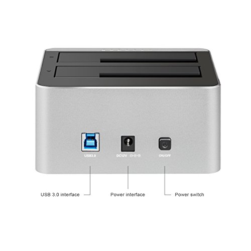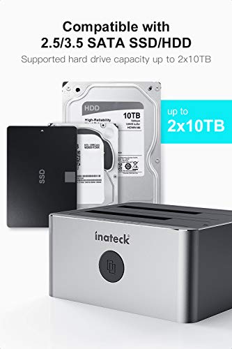 Inateck - Docking station per disco rigido in alluminio USB 3.0 a SATA Dual-Bay con funzione clone offline per HDD SATA da 2,5 e 3,5 pollici