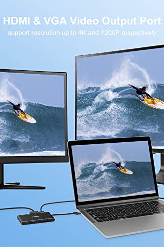 Hub USB C con 9 Porte: è in grado di aggiungere alla presa USB C del tuo computer 9 porte con diverse funzioni, incluse una porta USB C per ricarica PD, 1 porta USB C da 5 Gbps, 2 porte USB 3.0, 1 porta HDMI, 1 porta VGA, 1 lettore per scheda SD e 1 lettore per scheda Micro SD