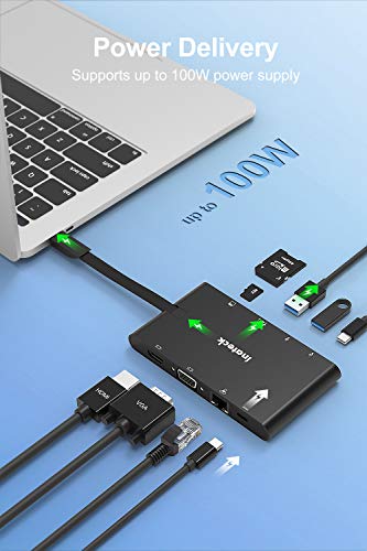 Inateck Hub USB C Multi Porte 9 in 1 con Porte PD Tipo C, HDMI 4K, VGA, Porte Ethernet RJ45 Gigabit, Lettore Scheda Micro SD/SD per USB C Laptop