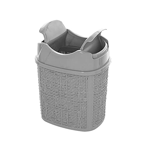 Inbagno Cestino Bagno in plastica con Doppio Coperchio Basculante, Design Moderno con Motivi a Intreccio, capienza 5 lt (Grigio)