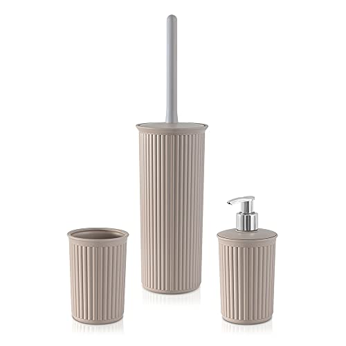 Realizzato in plastica di qualità presenta una particolare rigatura che lo rende versatile ed abbinabile a tantissimi stili di bagno. INCLUDE scopino con manico in plastica, coperchio paraspruzzi e setole.