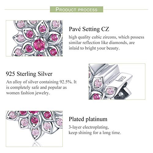 INBEAUT - Ciondolo in vero argento Sterling 925 con fiore di loto rosso, adatto per braccialetti e collane originali