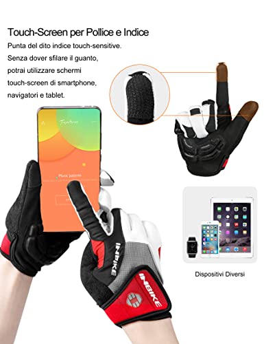 INBIKE Guanti MTB Guanti da Ciclismo Antiscivolo Resistenti e Traspiranti con 2 Dita Touchscreen per Mountain Bike(Rosso,M)