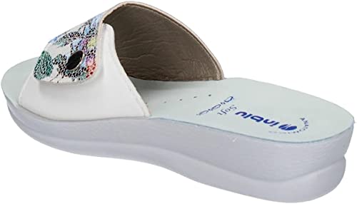 Inblu Ciabatte da casa a Strappo e Dettaglio Floreale, Sandali Donna, Bianco, 37 EU