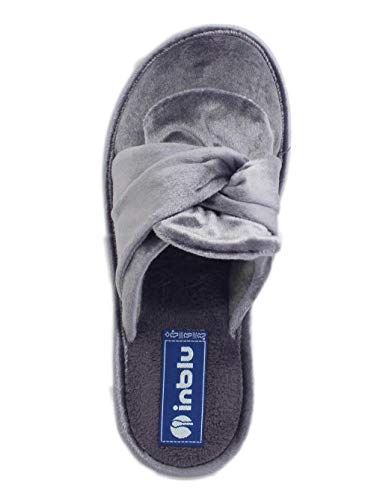 Inblu Libano Ciabatta Chiusa Donna in Velluto con Fiocco Aperta Dietro Tacco 3 CM Sottopiede Imbottito Articolo LB-85 Grigio (36)