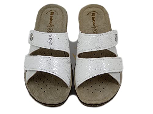 Inblu Rigata Ciabatta Donna Estiva Regolabile Doppio Strappo Sottopiede Pelle Imbottito Zeppa 4 CM Articolo 2675 Bianco (37)