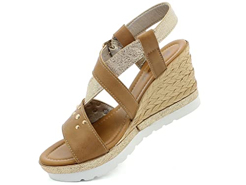 Inblu Sandali Zeppa con intrecci e Borchie, Donna, Camel, 40 EU